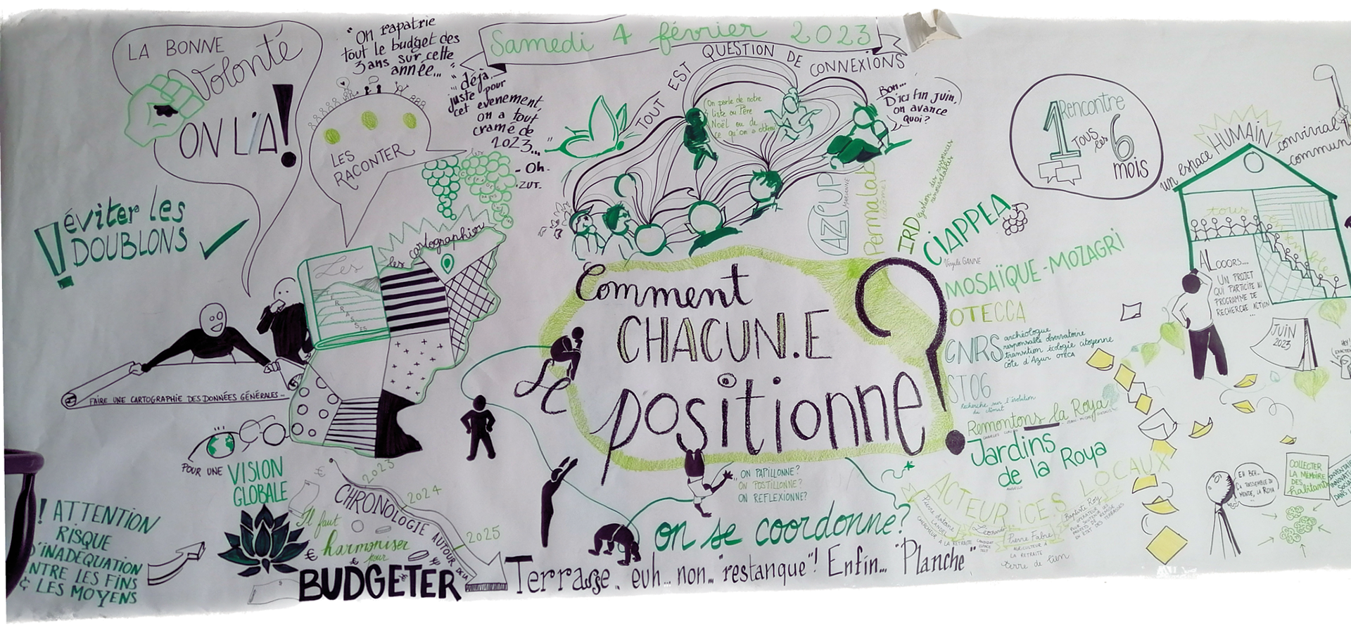 Prises de notes sur fresque pour l'association Culture en Terrasse en co-création avec Morgane Ganault