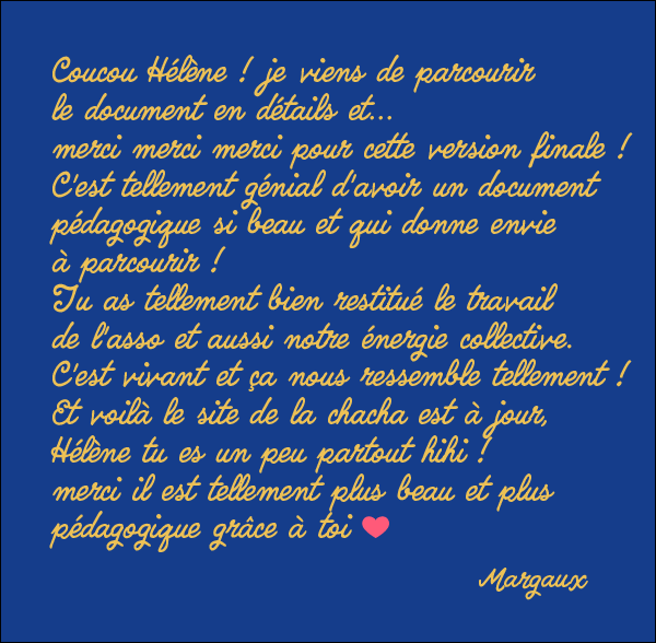 Ci-dessous ce sont les résultats du parcours sognu en bienfaits et en freins, que j'ai mis en page par le biais de l'association Les Nouvelles Imaginaires.